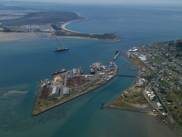 Located in Bluff Harbour, at the southern tip of New Zealand’s South Island, South Port is New Zealand’s southernmost commercial deep water port. South Port’s operations are centred on the 40 hectare (100 acre) man-made Island Harbour at Bluff, plus a dedicated wharf and causeway servicing Rio Tinto’s New Zealand Aluminium Smelters at Tiwai Point and a town wharf structure servicing the coastal petroleum industry and bunkering vessels.